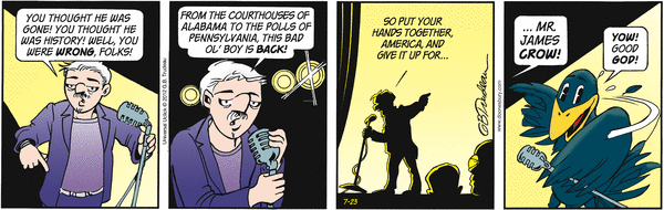 I hope Doonesbury has James Crow's band members carry him off the stage at the end of the show, cause he's so spent from bringing us that righteous soul music!