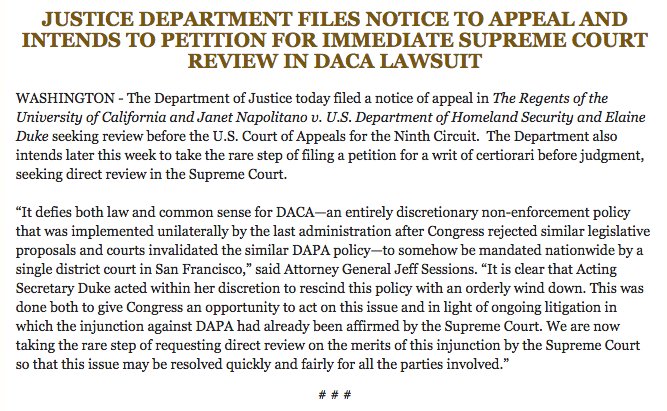 BREAKING: DOJ asks SCOTUS for immediate DACA Hearing (Original Post)