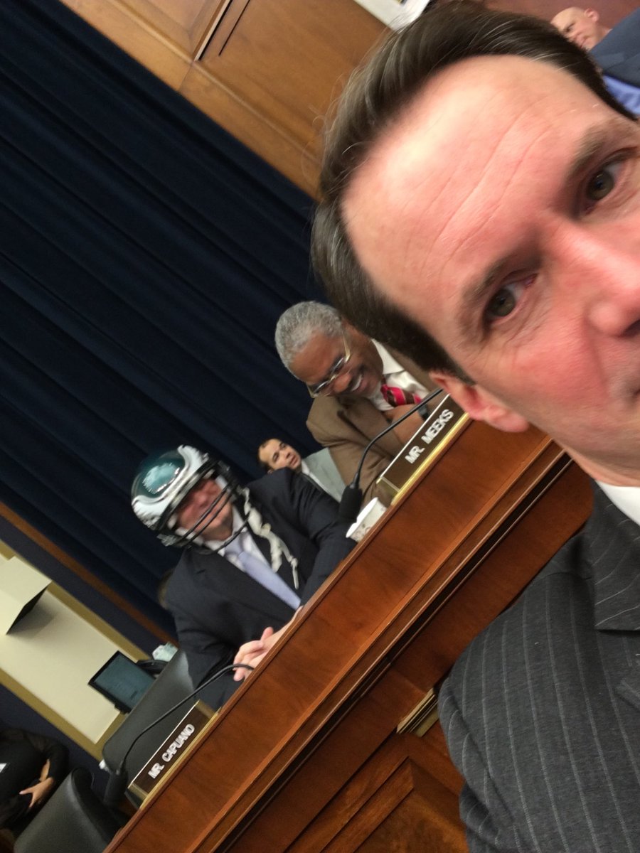 Rep Michael Capuano of Massachusetts enters the house financial services hearing in an EAGLES helmet (Original Post) kpete Feb 2018 OP