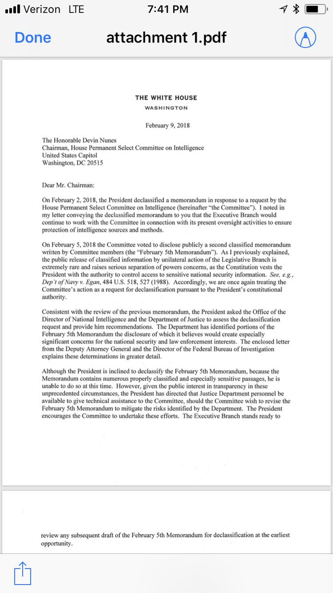 remember he's supposedly preventing the release of the memo on the basis of national security, after having approved the republican memo over the wailing from in intelligence community about national security implications.