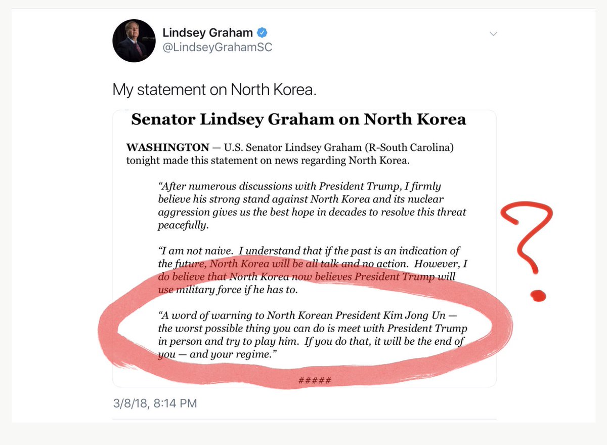 (128,798 posts)Maybe that's because Graham knows Trump can be played. All Kim has to do is throw a fancy party for Trump, flatter him and tell him what a great leader he is, and Trump will give away the store. Kim will get all the nukes he wants.