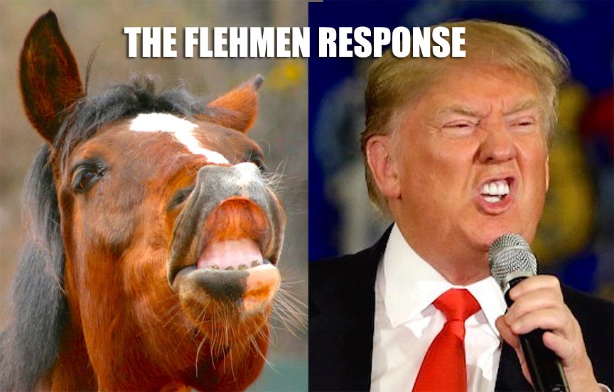 Male animals sometimes react with the flehmen response to a particularly strong scent, like female urine or feces.