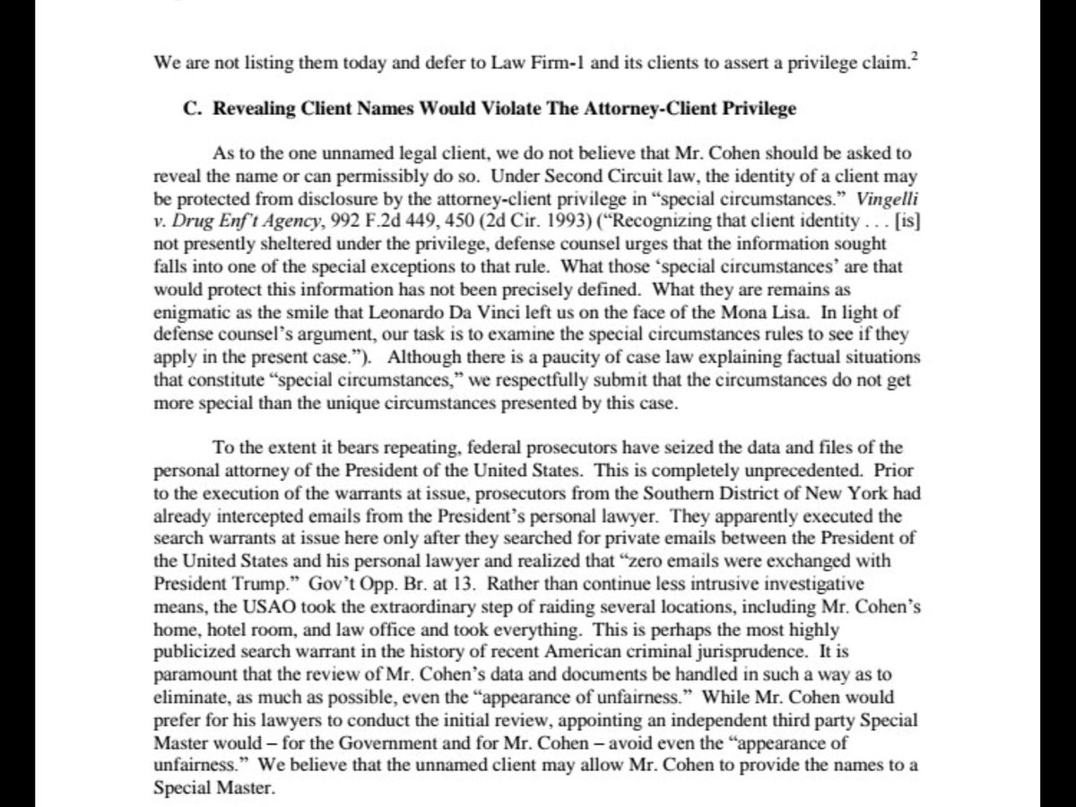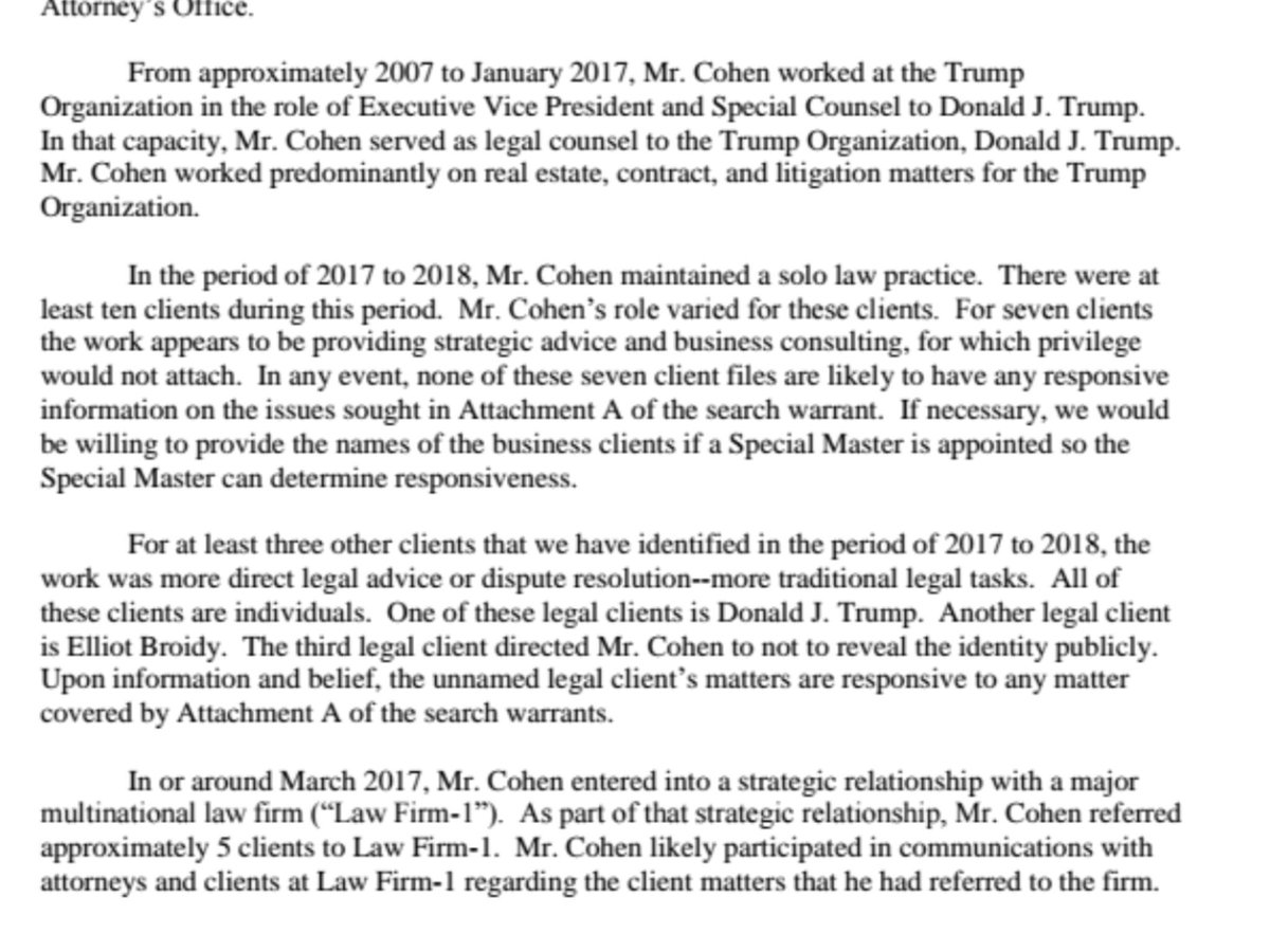 NEW: Michael Cohen says he gave legal advice to three clients in the last year: Donald Trump, GOP fundraiser Eilliott Broidy and a third person he refuses to identify in court filing