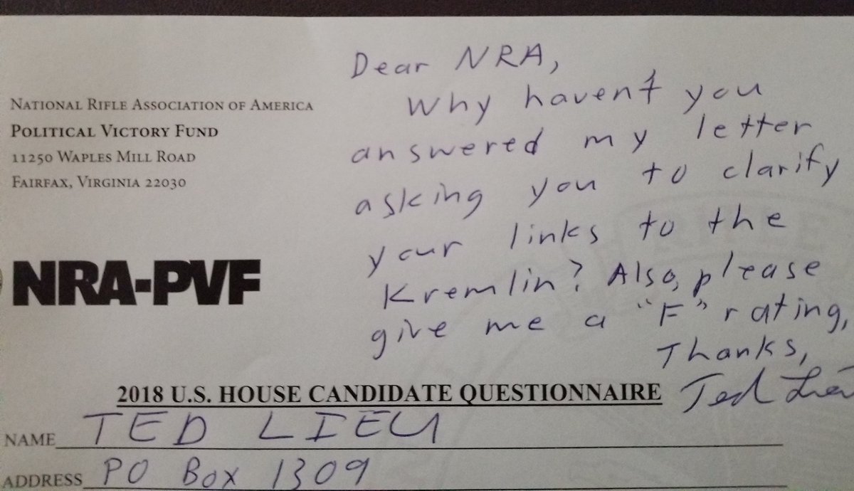 Ted Lieu: "Today I received a candidate questionnaire from NRA. This is how I answered it..." (Original Post)