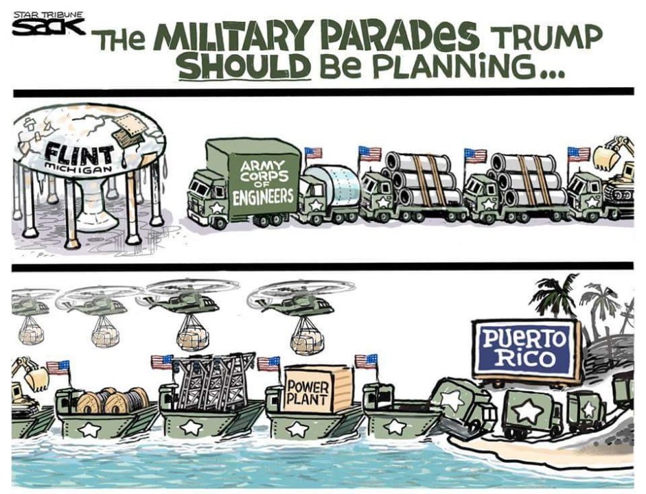 (13,286 posts)Besides, he already visited PR and threw them a couple of cases of paper towels (at great risk to himself, BTW -- do you know how badly his golf game would have suffered had he strained a muscle?).