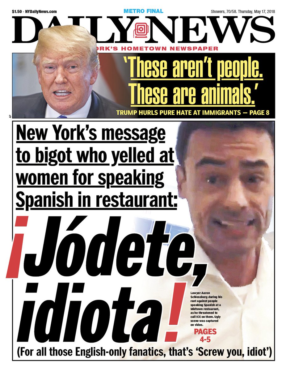 Related: Editorials & Other Articles, Issue Forums, Alliance Forums, Region ForumsAn early look at Thursday's NYDN front...Como se dice racist?