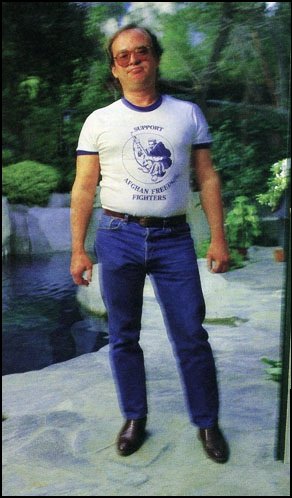 Note: His shirt says "Support Afghan Freedom Fighters" (Who would later become the Taliban and Al Qaeda)