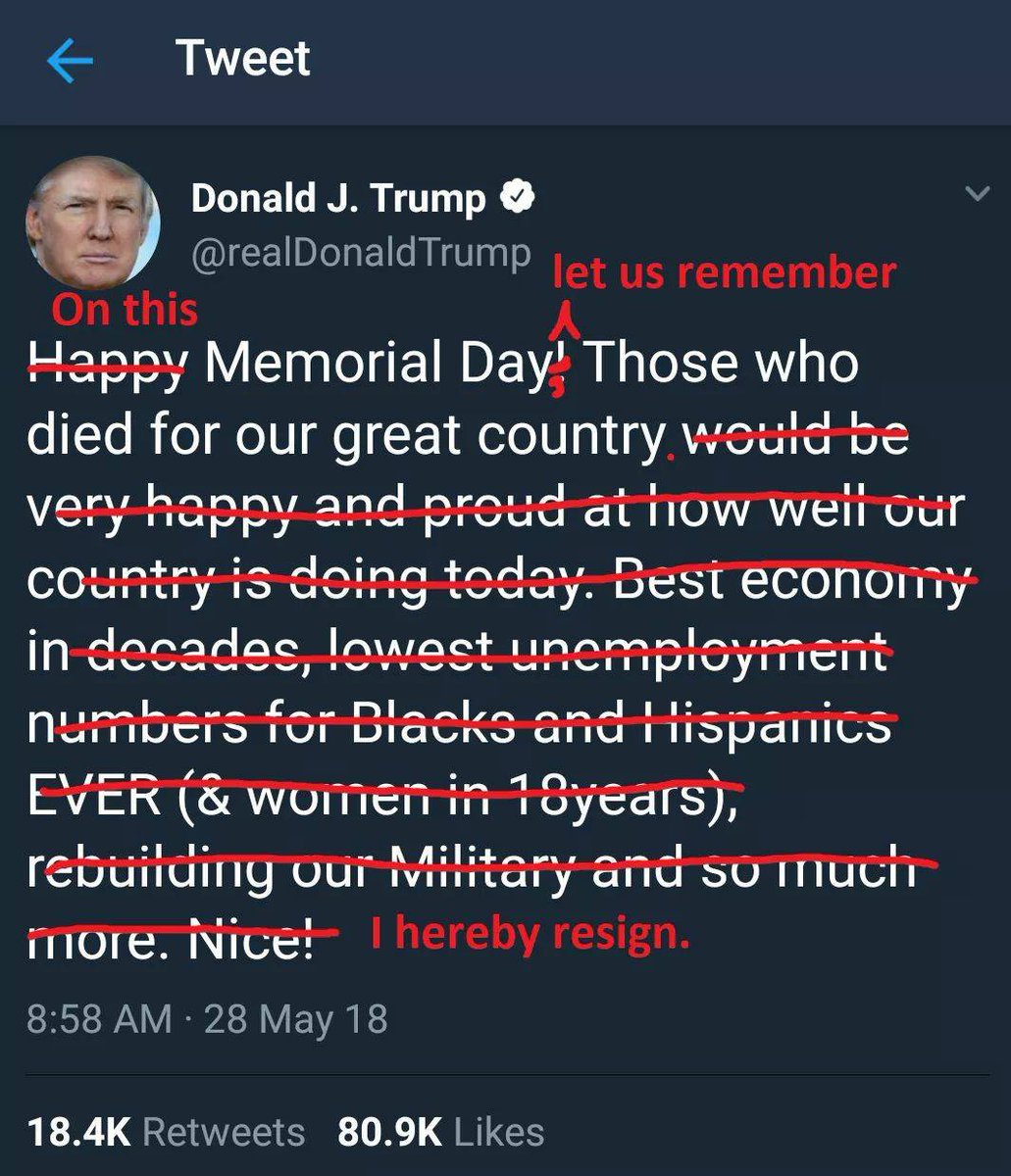 Trump's Memorial Day tweet...the "fixed" version. (Original Post)