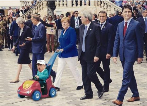 "A Barrage of Insults Upsets Global Pact" and then that incredible photo. This is how history will remember the Trump administration. A thin skinned, willful man-child who throws tantrums, whenever he doesn't get his way.
