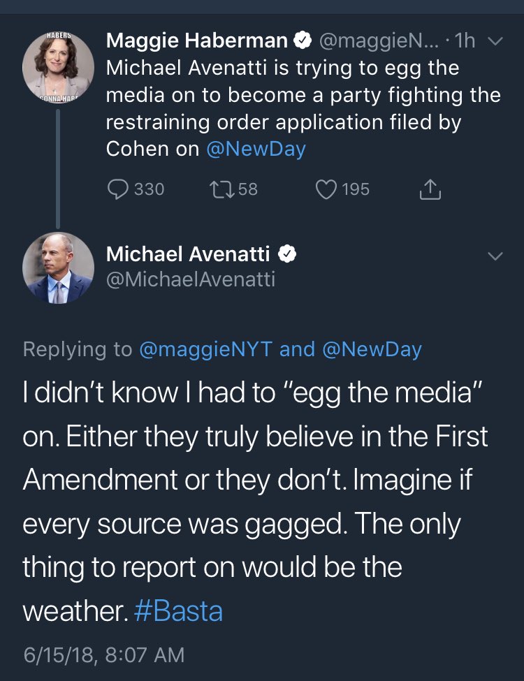 Haberman tried to clap at Michael Avennati. The clap back will leave a mark. (Original Post) kpete Jun 2018 OP