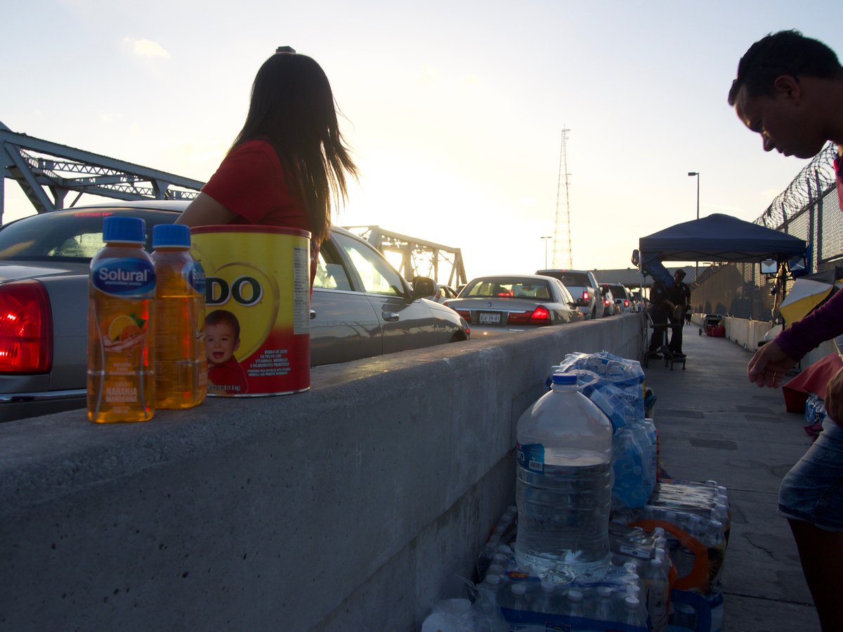 On a bridge between Mexico and Texas, CBP is making asylum seekers wait for days in the sun. Passers-by are donating powdered milk for toddlers, food, and water.