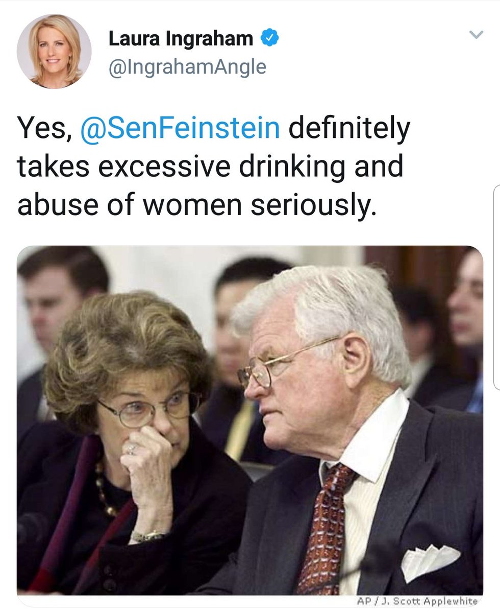 (1,980 posts)Without delving into personally identifiable material, I will tell you that this was related to me by one of Dr. Blasey's fellow club members last week. The good Dr. was beside himself not knowing just how he should react to recent events. After describing how tough it was for him to interact with Dr. Blasey because he just didn't know what to say (don't you feel his pain?), he added "you know, I hear she didn't have the greatest reputation in high school". Lovely. These are loathsome individuals. The best thing I can say about them is that if the actuarial tables are accurate, they will soon pass from our midst.