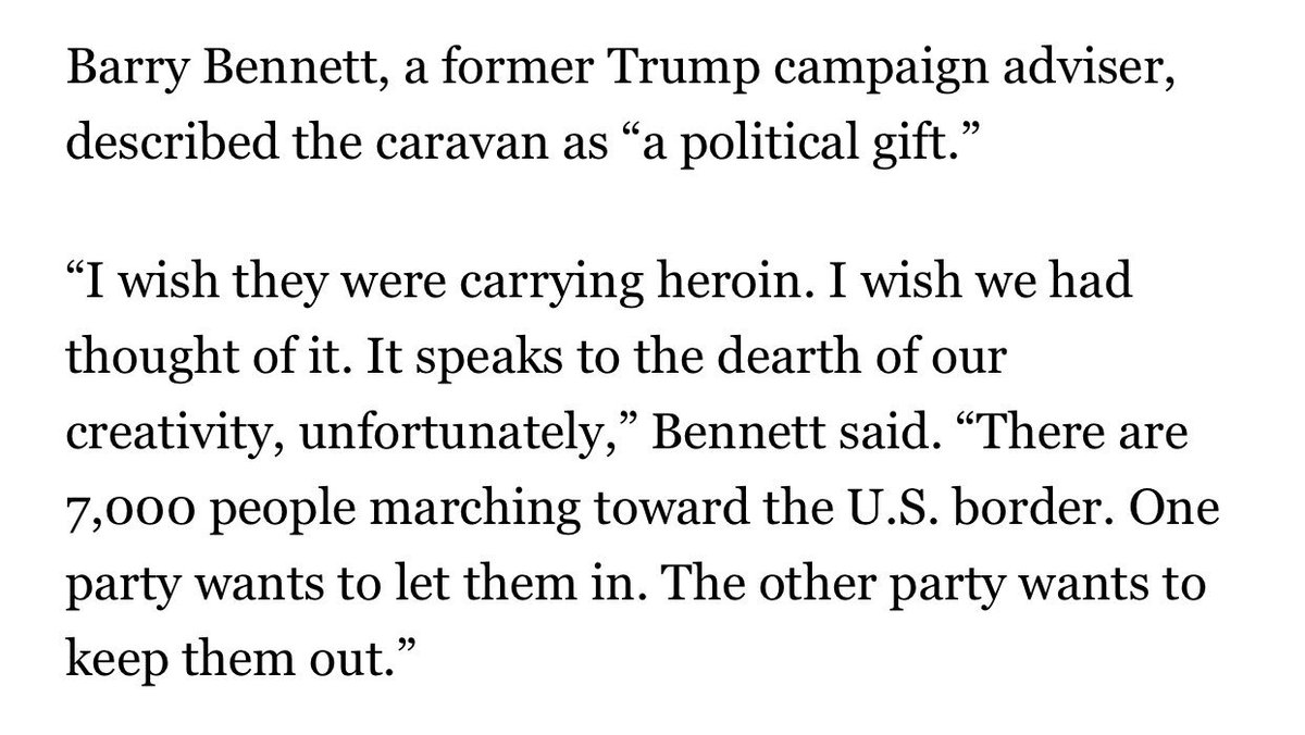 Former Trump Advisor: The caravan is "a political gift" & "I wish they were carrying heroin" (Original Post) kpete Oct 2018 OP