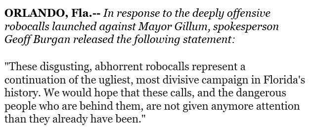 White supremacist group trolling black Florida voters with a robo call sounding like "Andrew Gillum" (Original Post)