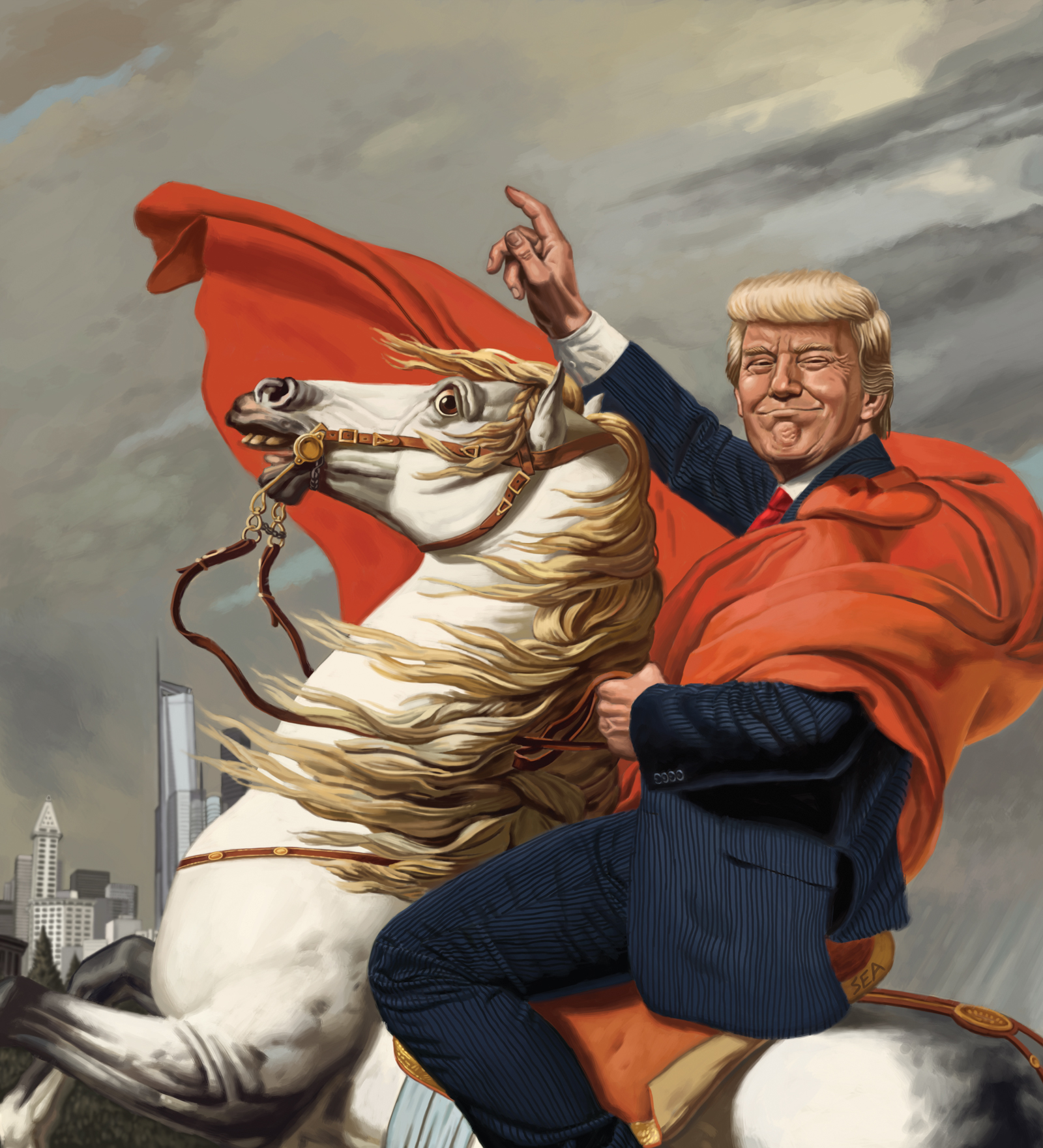(13,877 posts)Let's hope he gets bucked off. Looks like the horse could pull it off. I mean, look at the horse's eyes...know the feeling. As one poster said...time for a whole bunch of "Davids" to bring out their slingshots...i.e. votes...to end the Goliath scourge.