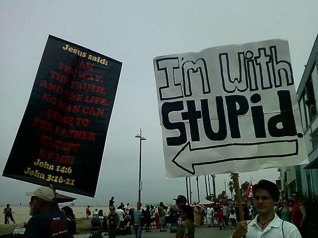 (28,581 posts)Is the person next to her wearing a shirt that says " I am with Stupid"?