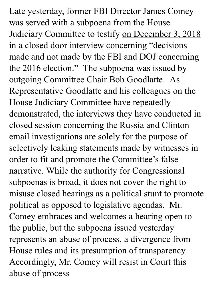 https://www.dailykos.com/stories/2018/11/22/1814667/-James-Comey-s-Lawyer-Says-They-ll-Resist-R-Goodlatte-s-Subpoena-and-His-Statement-is-A-Doozy?utm_campaign=recent