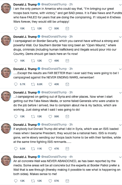 So if Trump can't get Shanahan confirmed, he could turn to Dan Coats or... does Jared have time in his busy schedule? You know what would be hilarious? If Trump winds up appointing the first closet case to run the Pentagon, Lindsey Graham-- even though the two of them don't see eye to eye on much to do with defense or foreign policy. Señor T spent New Year's Eve day bathing in self-pity and tweeting his unhinged and bathetic bullshit. He's got to be removed and any member of Congress who doesn't help needs to be defeated ASAP.