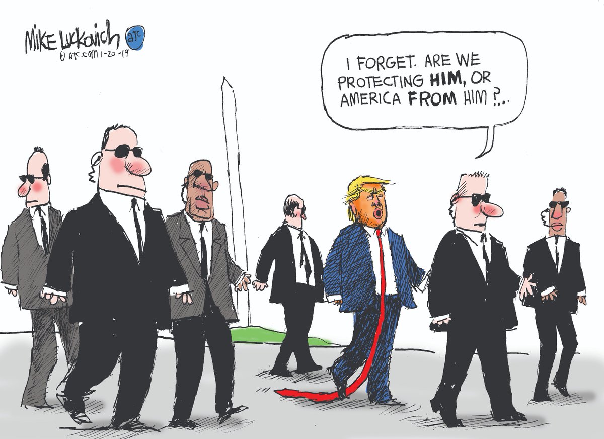 Luckovich-I forget, are we protecting HIM or America from him??? (Original Post)