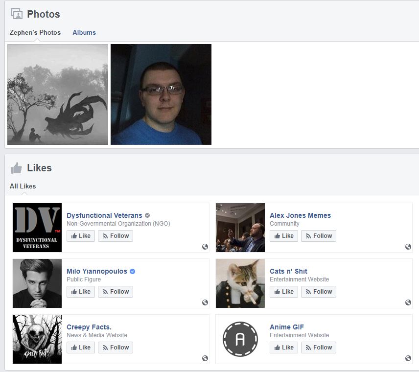 It seems like a fairly uncommon name so I looked him up on facebook. This one was the right name, right age and right town. Alex Jones and Milo. Not a huge surprise