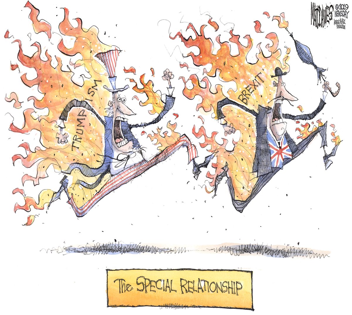 (27,002 posts)12. The one cartoon with The US and Great Britain on fire should have a tiny Putin with a blow torch