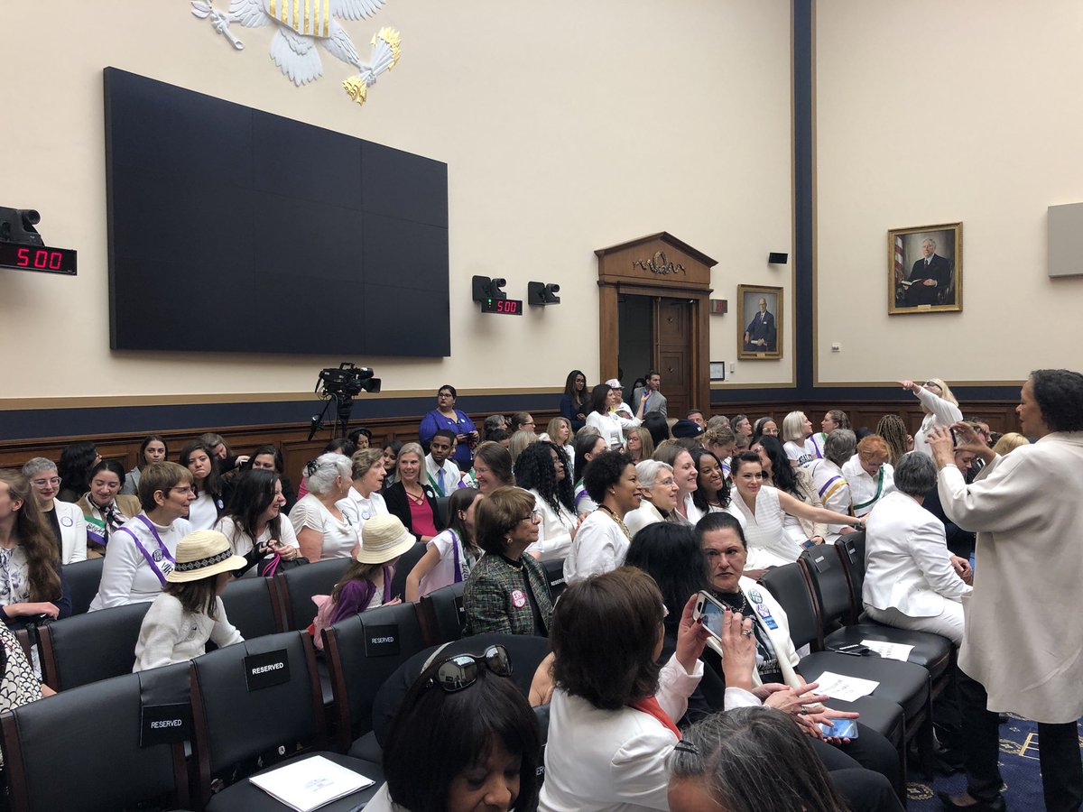 The Gallery is full- almost all in #suffragist white #ERANow Were ready for the hearing to begin! Are you? #ERAHearing