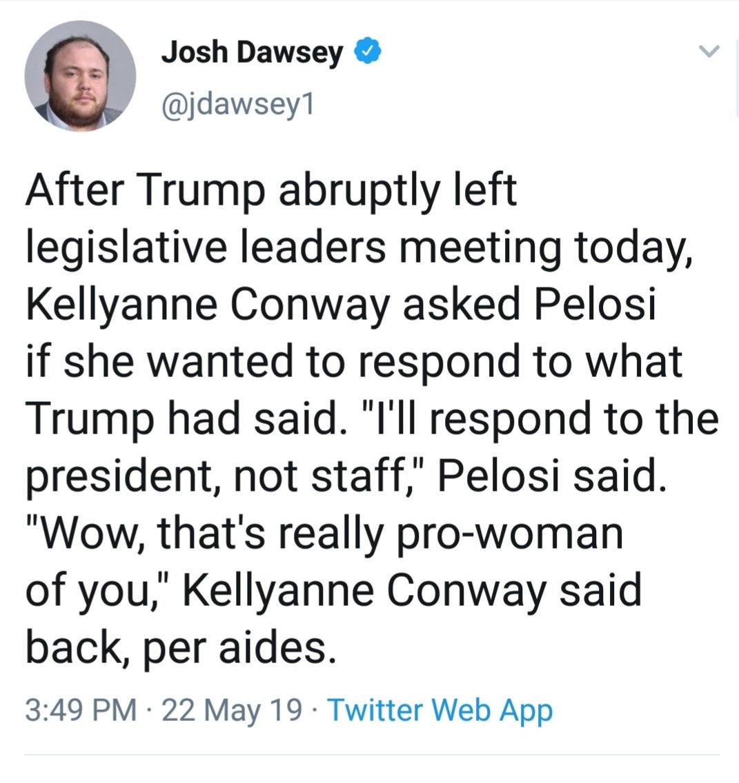 Pelosi put down Conway as an underling, not as a woman. Conway's response is very telling.