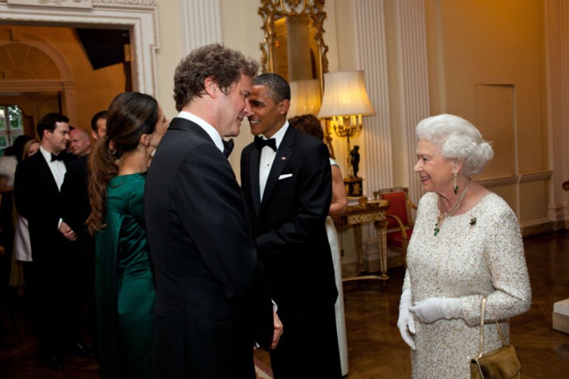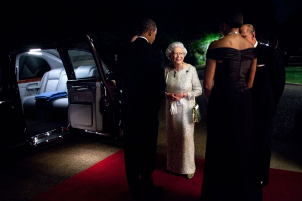 (4,906 posts)Queen Elizabeth saying goodnight to the Obamas, after a dinner at the US Ambassador's Residence, 5/2011: