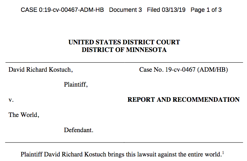 (195,600 posts)Kostuchs complaint is nearly impossible to follow. Aspects of the pleading appear to challenge the practices of several financial institutions; other aspects appear to challenge the validity of an arrest; others still appear discontented with various instances of disrespect. Other allegations defy explanation. None of the claims is spelled out in much (or any) detail, nor is any particular claim attributed to any particular actor; instead, the complaint meanders from one grievance to the next.