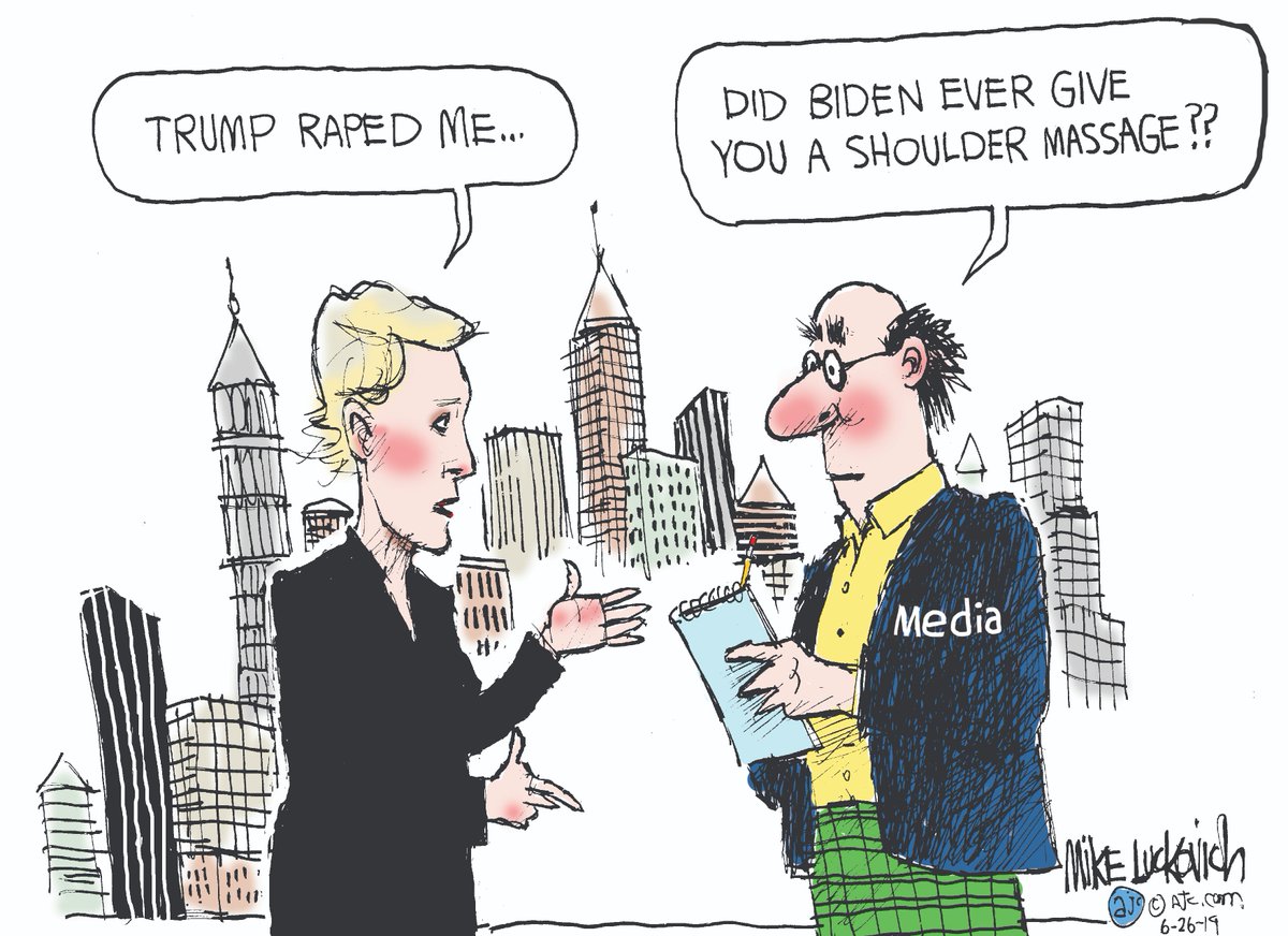 Luckovich-Media treatment of trump's rapes compared to Biden's Shoulder Massages (Original Post)