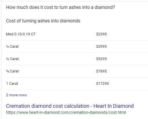 (4,671 posts)The cremains turned into diamonds for each of my daughters, loose, or for setting in rings or pendant.
