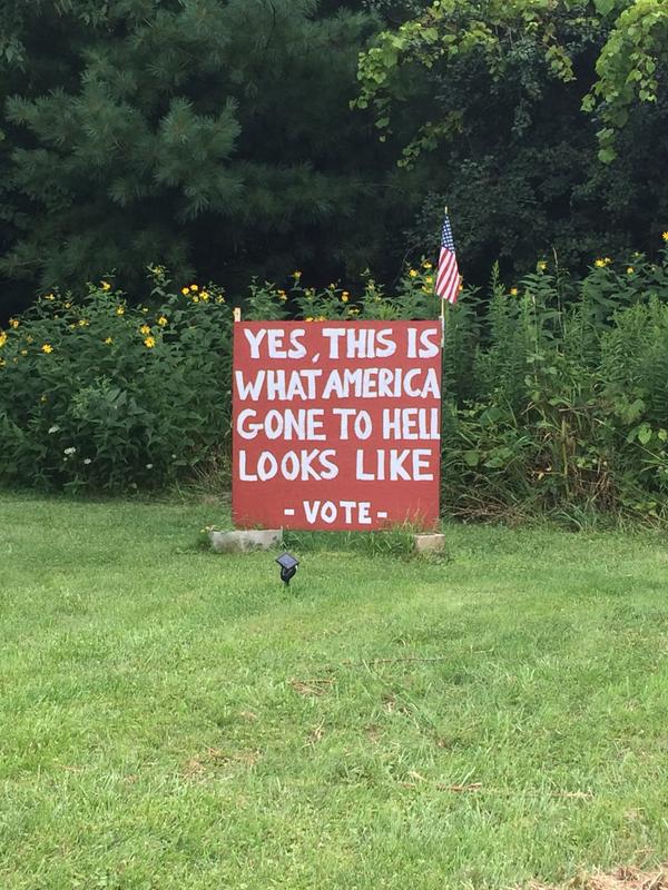 They are usually right wing Clinton, Obama, Pro Trump hate signs. Theses are a breath of fresh air and restore my faith in country dwellers with a lot of time on their hands.