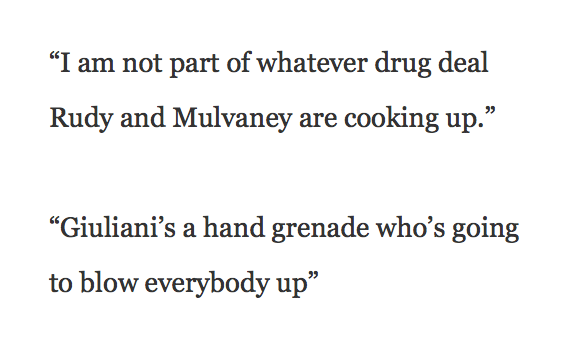 (10,860 posts)and "I'm not part of whatever drug deal Rudy and Mulvaney are cooking up"