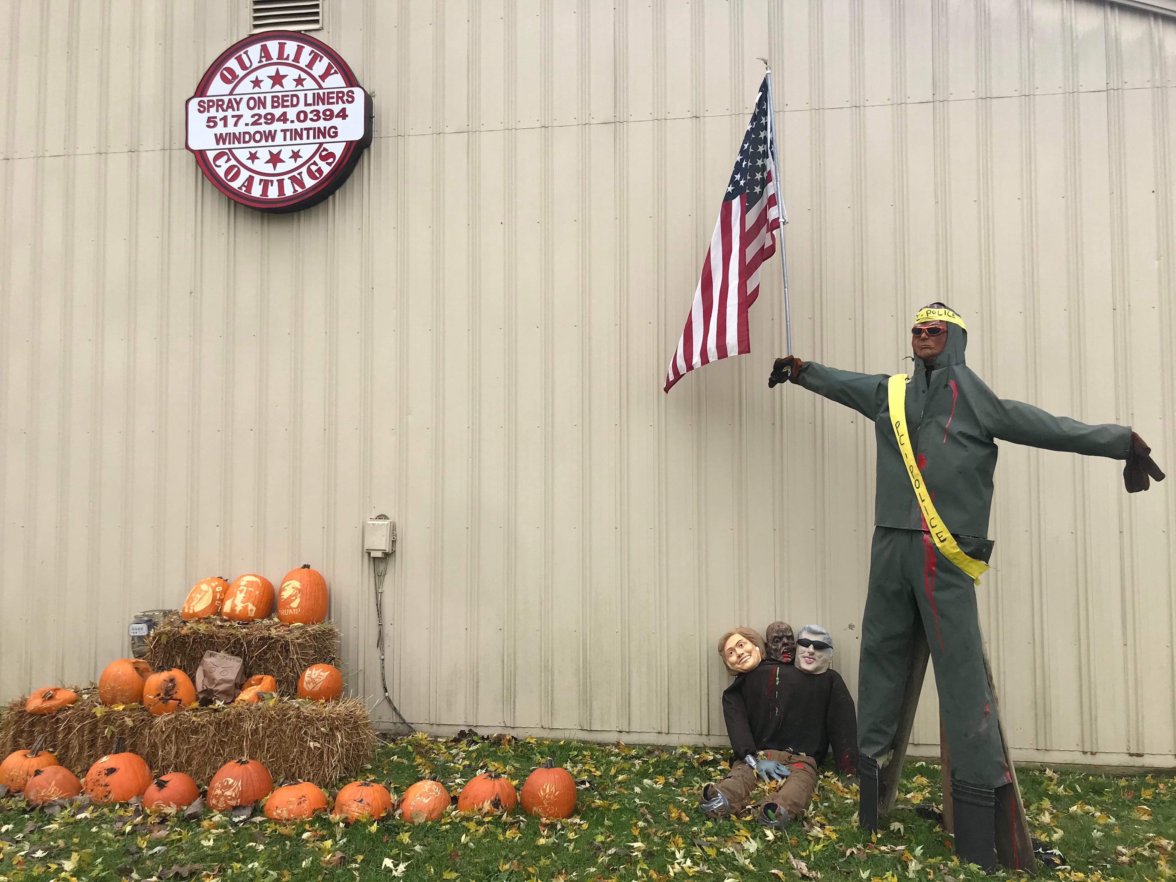 Quality Coatings owner Dave Huff has since altered the Trump scarecrow that stands outside his business on Carr Street in Fowlerville, about 10 miles west of Howell. Huff hadn't expected backlash to the decorations because he said he's not racist and "no race ever went into this thing."