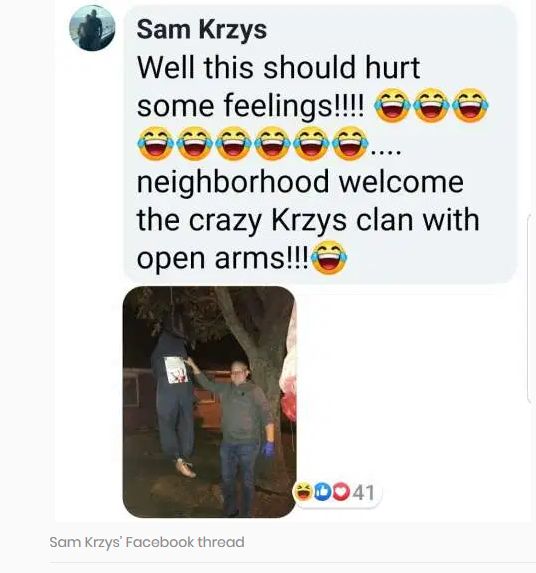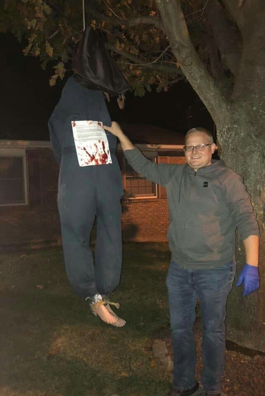 This is a police officer in Weirton, West Virginia who thought it was okay to display a lynching in his front yard on Halloween.