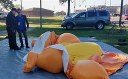 Jim Girvan, who is with a group that "adopts" out Baby Trump balloons told The Associated Press that a man approached the 20-foot-tall balloon with a knife. He added that the man was arrested.