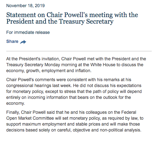 Related: Editorials & Other Articles, Issue Forums, Alliance Forums, Region ForumsPresident Trump just had a White House meeting with the Fed Chair. Fed statement afterward...