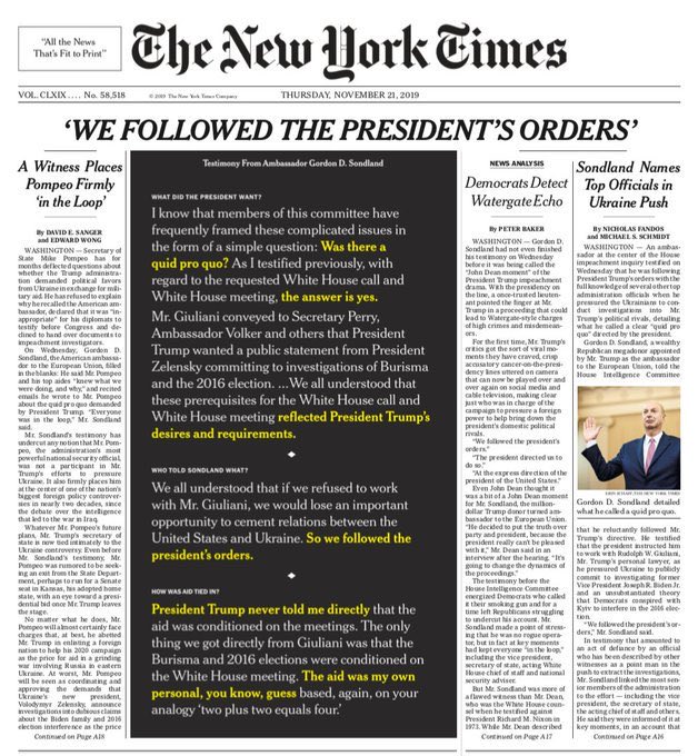 Nicolle Wallace added that the cliche nobody-says-this-anymore,-but - still needed to be followed with but Im gonna say it anyway: I think today changed everything. Also heard Sondlands testimony called a John Dean moment.