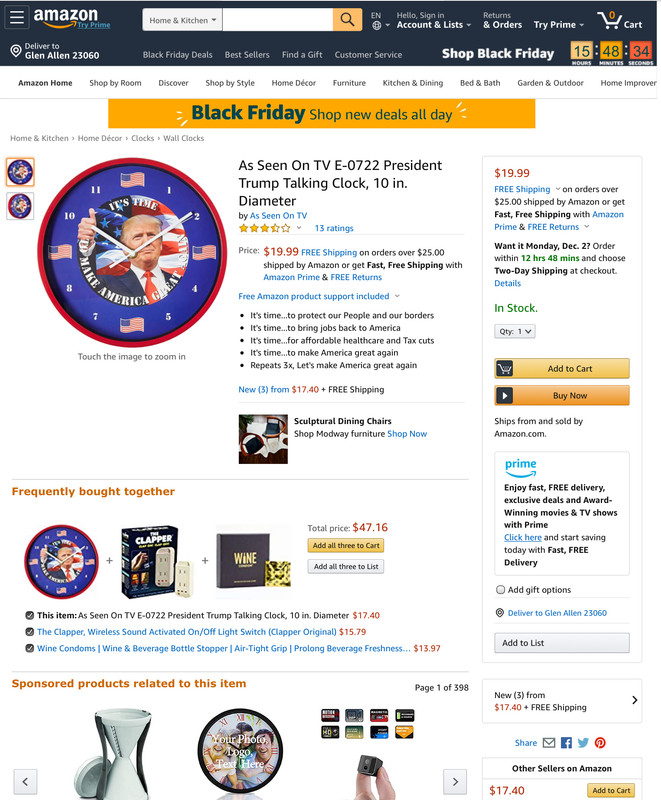 As Seen On TV E-0722 President Trump Talking Clock, 10 in. Diameter