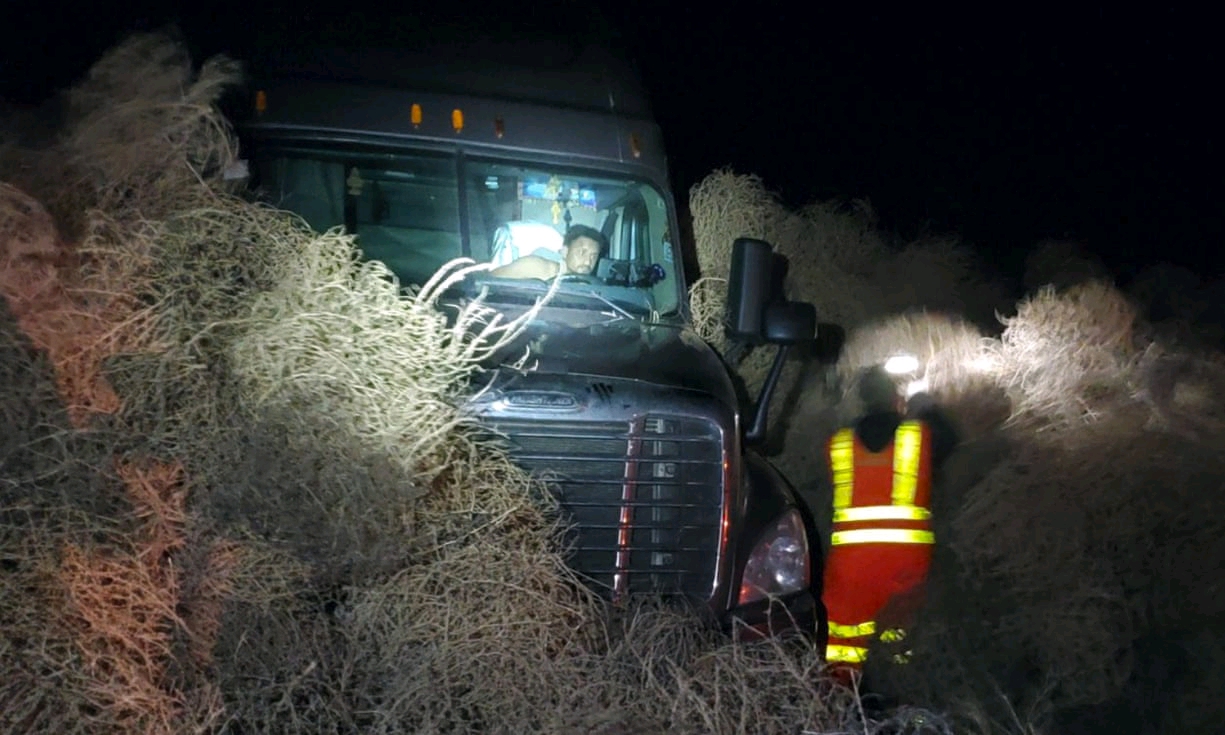 People were still stuck at midnight and rung in the new year trapped under the weeds, Thorson said, adding that troopers found one abandoned car trapped in the tumbleweeds at daylight. No one was inside.