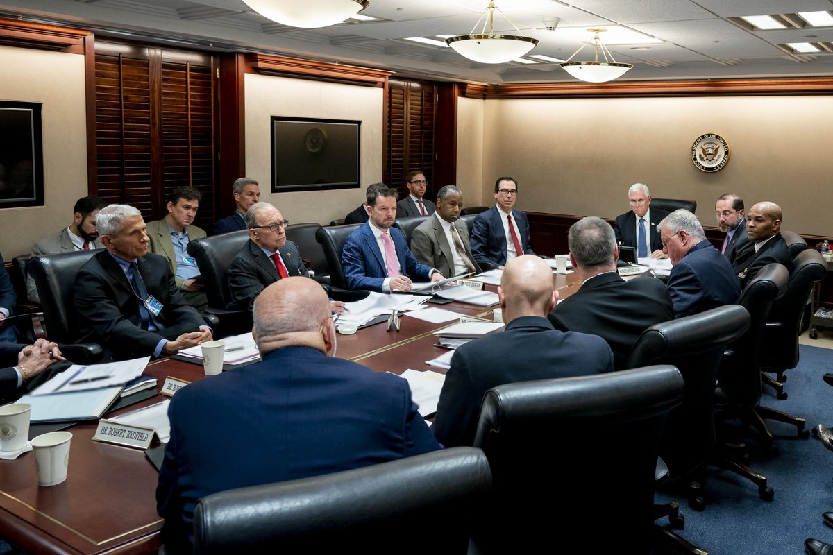 Today we had a very productive meeting of the White House Coronavirus Taskforce in the Situation Room. We placed additional travel restrictions on Iran & we are increasing the travel advisory to level 4, urging Americans not to travel to specific regions in Italy & South Korea.