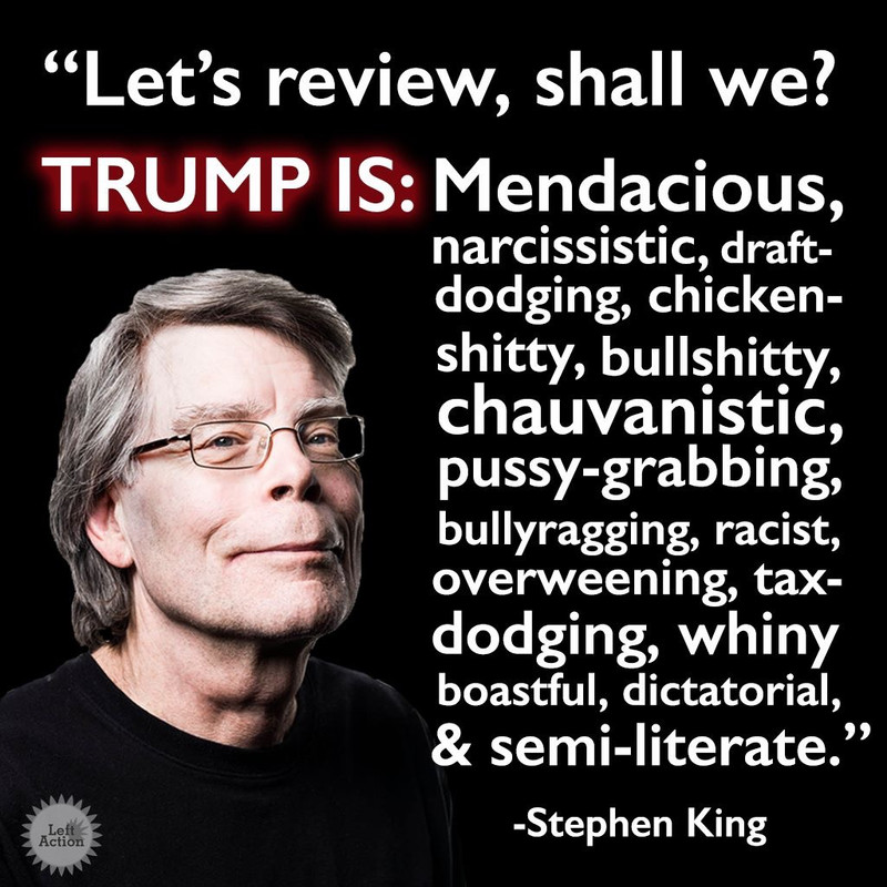 Related: Editorials & Other Articles, Issue Forums, Alliance Forums, Region ForumsFeel free to add your own descriptives to Stephen Kings.....