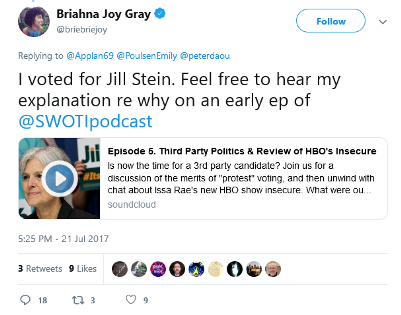 (18,714 posts)Bet she'll be crowing for Jill Stein soon