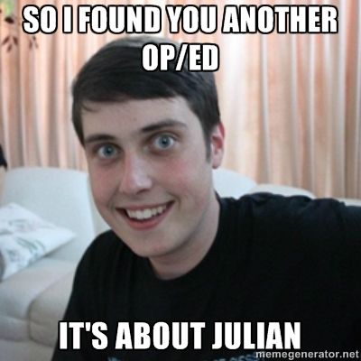 I refer you to the full article for the rest of the lunacy. I think Julian likes to get pissed and tweet.