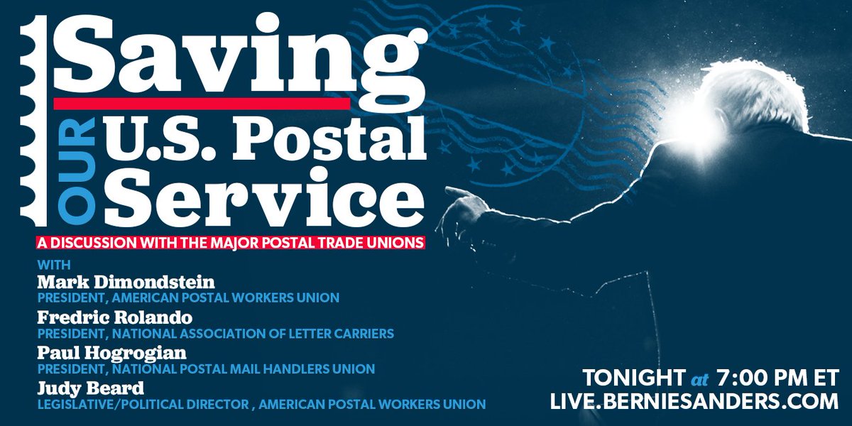 (33,511 posts)3. SAVING OUR U.S. POSTAL SERVICE (LIVE AT 7PM ET)