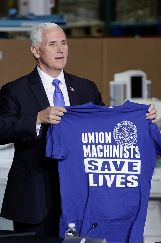 Creepy Mike was talking about a company who has retooled to make ventilators "Mr President (gag), I brought you back a t-shirt and it says "union" and something. Unless he's talking something other than our precious unions, you did a bad Mike