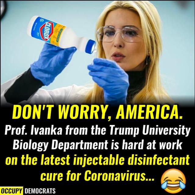 Stable genius says sunshine colonics and clorox cocktails cures Coronavirus.