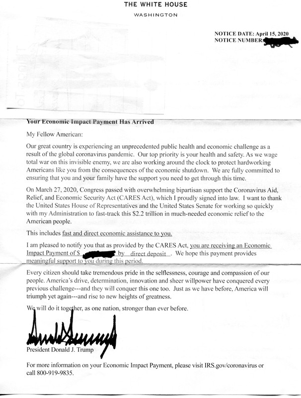 At least all we got was the check itself without the trump babble.