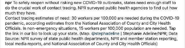 Related: Editorials & Other Articles, Issue Forums, Alliance Forums, Region ForumsCV-19 and states reopening: Majority of states don't have enough staff to do contact tracing