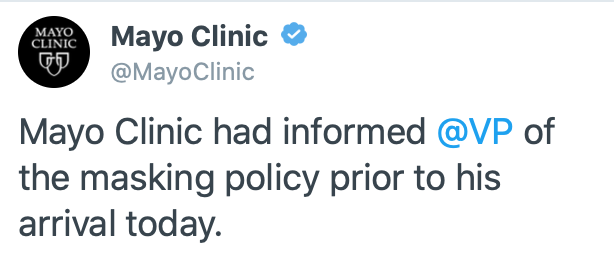 https://www.rawstory.com/2020/04/karen-pence-tells-fox-news-that-mike-pence-didnt-know-masks-were-required-at-mayo-clinic/''